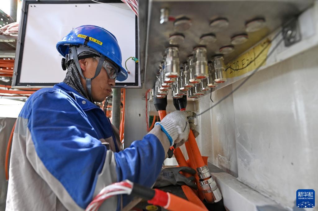 5月10日,工人在渤中19-6凝析氣田一期開發項目平臺建造現場進行設備安裝作業。