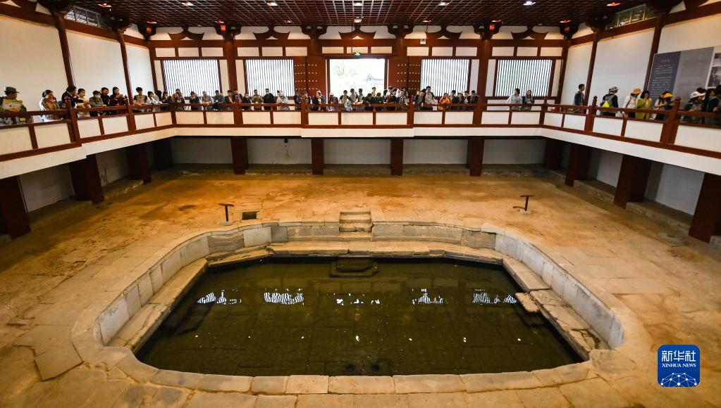 游客在西安華清宮景區蓮花湯參觀游覽(5月5日攝)。