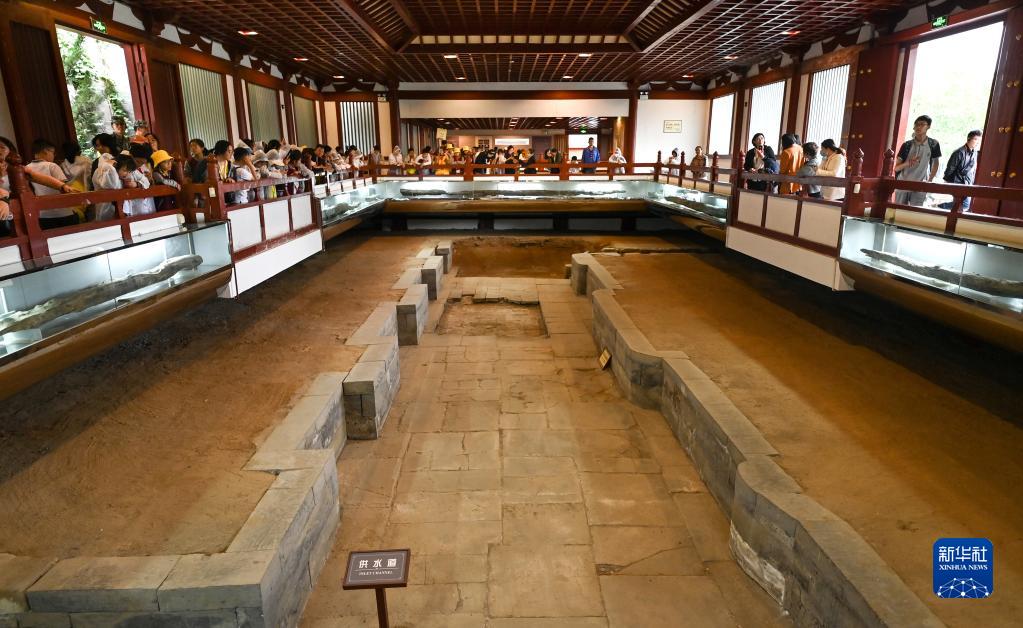 游客在西安華清宮景區星辰湯參觀游覽(5月5日攝)。