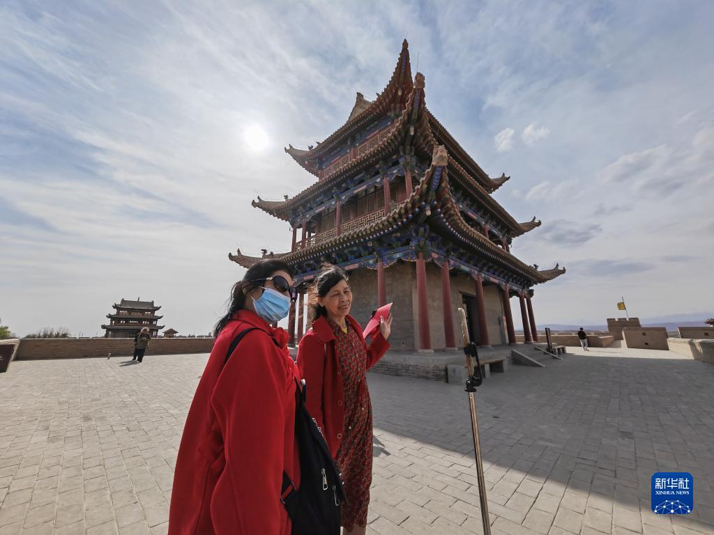 5月10日,游客在嘉峪關關城景區游玩(手機照片)。