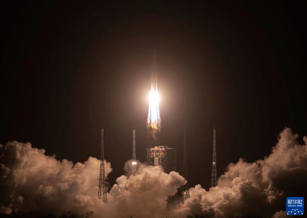 5月10日,搭載天舟六號貨運飛船的長征七號遙七運載火箭,在我國文昌航天發射場點火。新華社記者 金立旺 攝
