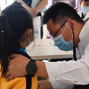 5月10日,無錫明慈心血管病醫院的心血管病專家在為參加篩查的兒童進行診斷。