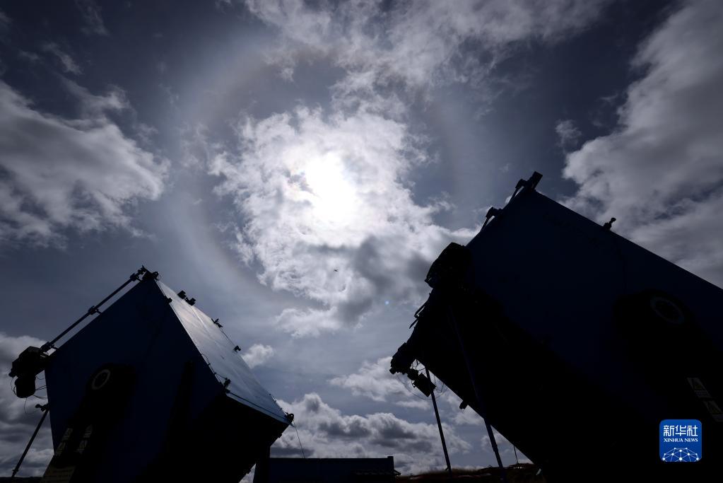 4月22日,高海拔宇宙線觀測站觀測基地廣角切倫科夫望遠鏡上空出現日暈。