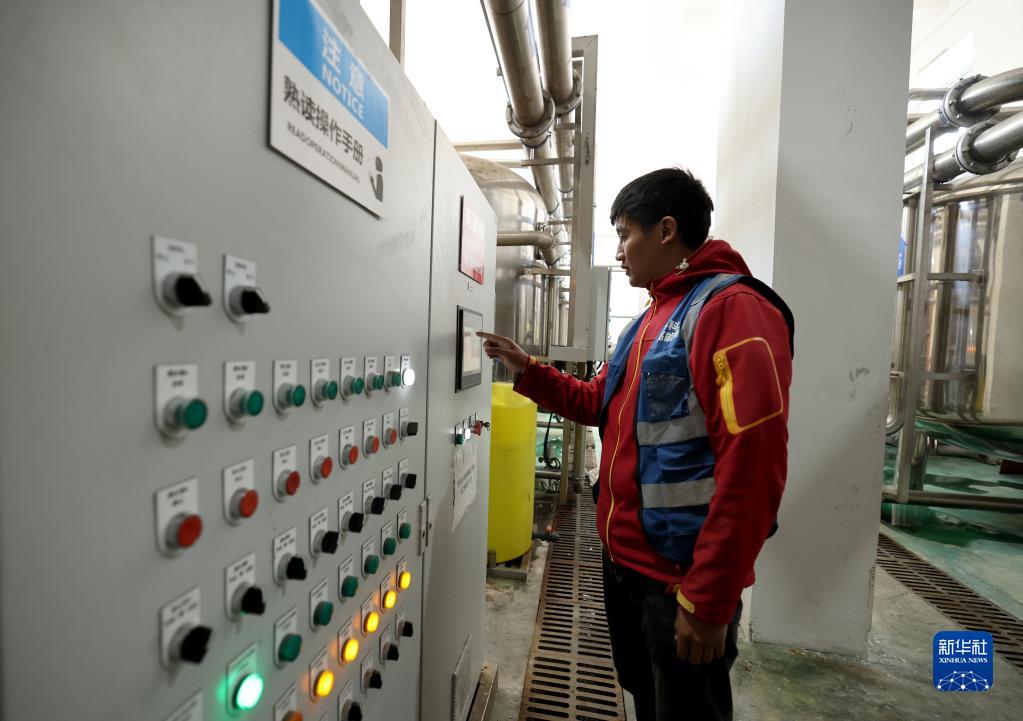 4月22日,在高海拔宇宙線觀測站觀測基地水處理機房,工作人員在操作水處理相關程序。