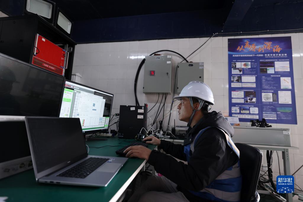 4月22日,工作人員在高海拔宇宙線觀測站觀測基地水切倫科夫探測器陣列處理實驗數據。