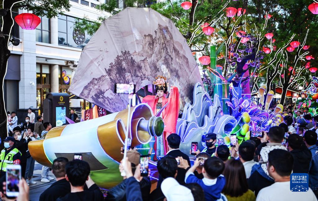 西安大唐不夜城進行的花車巡游(4月25日攝影)。