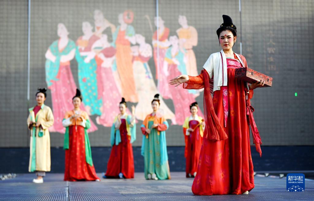 西安大唐不夜城進行的華服走秀(4月25日攝影)。