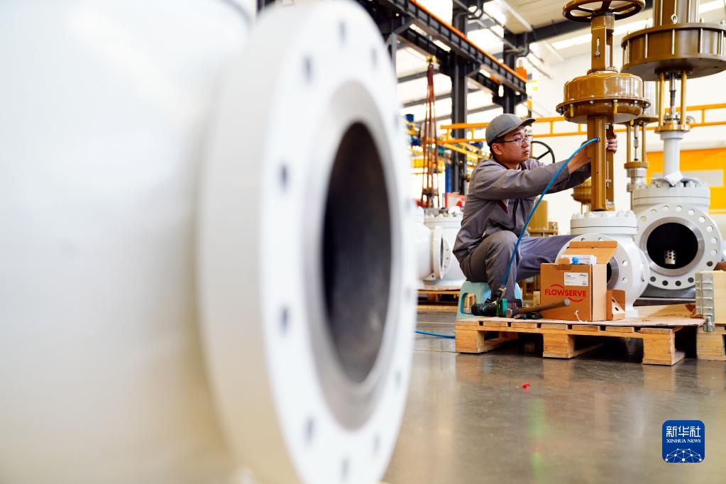 5月11日,在鄒城市艾坦姆流體控制技術(山東)有限公司,工人在加工高端流體閥。