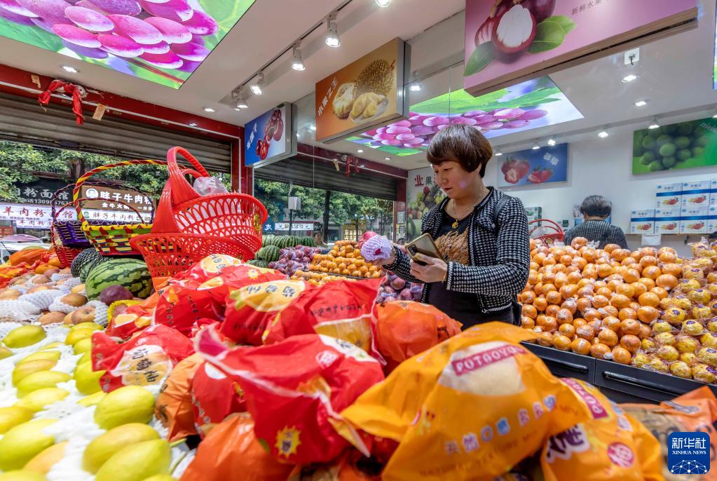 5月11日,消費者在貴州省黔西市一家超市選購水果。