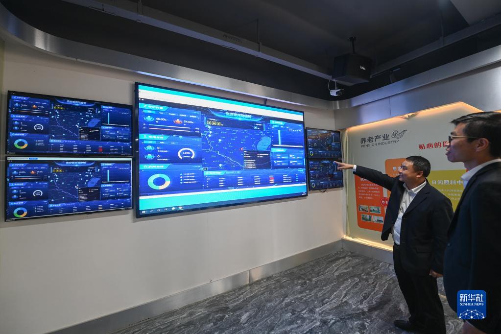 5月11日,工作人員在杭州市臨安區智慧養老服務中心的數字監管平臺上查看家庭養老床位服務的實時數據。