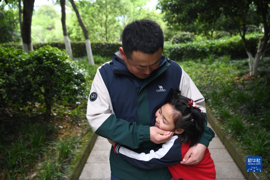 5月7日,在安徽省黃山市黃山區,休假中的秦志平和女兒秦靖妍在自家小區里交流。