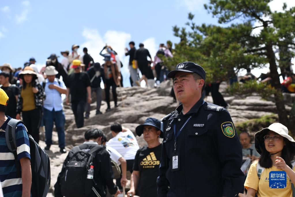 4月20日,秦志平在黃山風景區光明頂附近進行路段巡查。