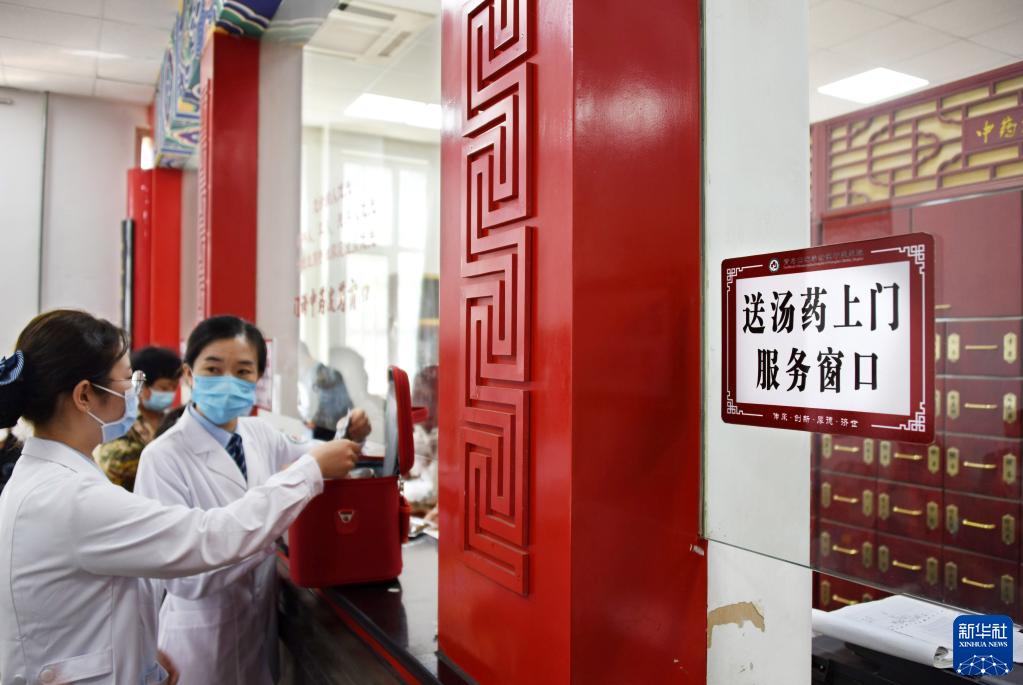 5月10日,青島西海岸新區中醫醫院護士在中藥房替患者領取藥品。