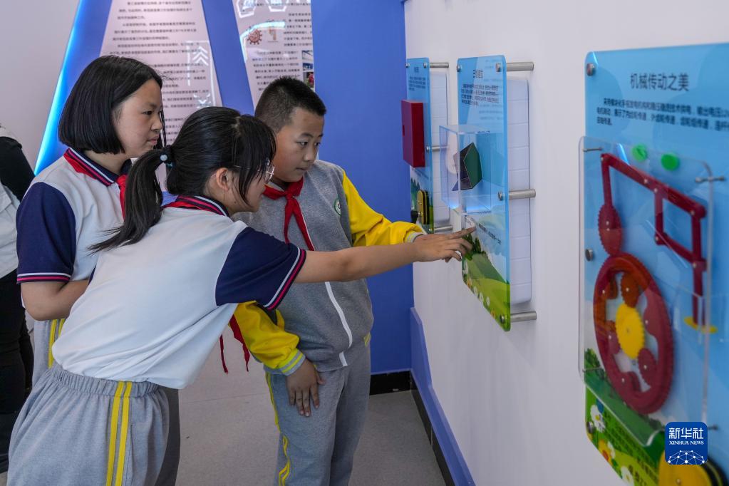5月11日,小學生在馬店村科普體驗中心內體驗科普展品。