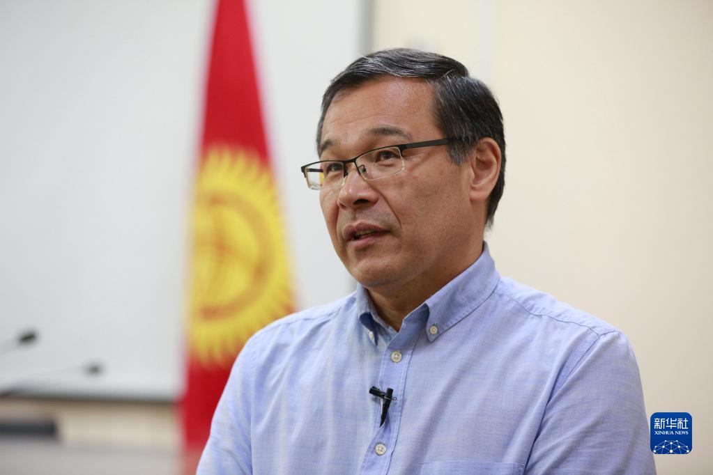4月27日,吉爾吉斯斯坦國家戰略研究所外事咨詢師舍拉迪爾在吉爾吉斯斯坦比什凱克接受新華社記者采訪。新華社發(羅曼 攝)
