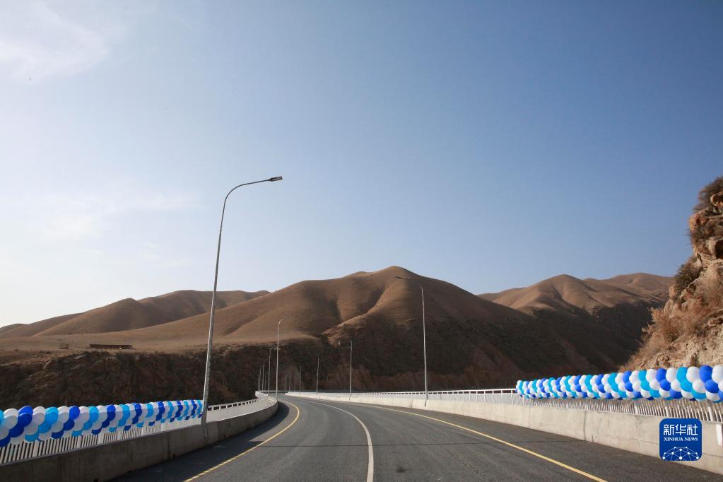 這是2021年11月10日拍攝的吉爾吉斯斯坦新北南公路二期工程的一座大橋。新華社發(羅曼 攝)