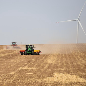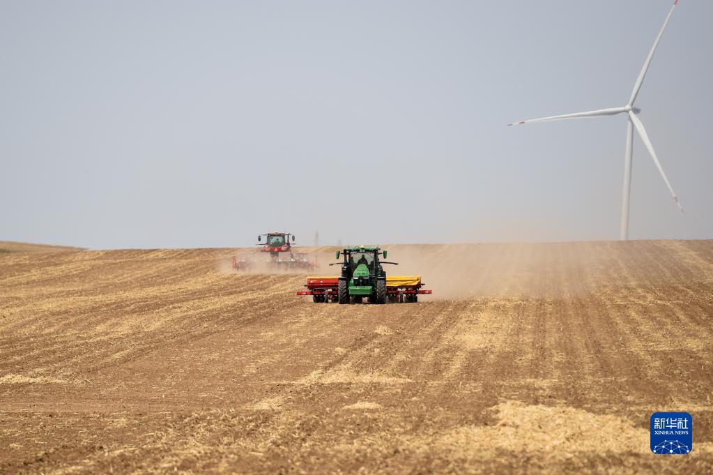 5月11日,呼倫貝爾農墾大河灣農牧場有限公司工人操作播種機械進行大豆播種作業。