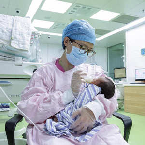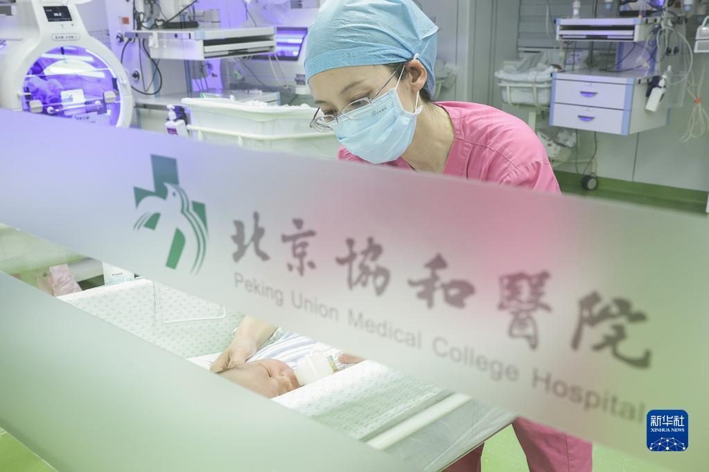 5月9日23時許,北京協和醫院新生兒重癥監護病房(NICU)護士崔國鳳在為小寶寶喂奶。