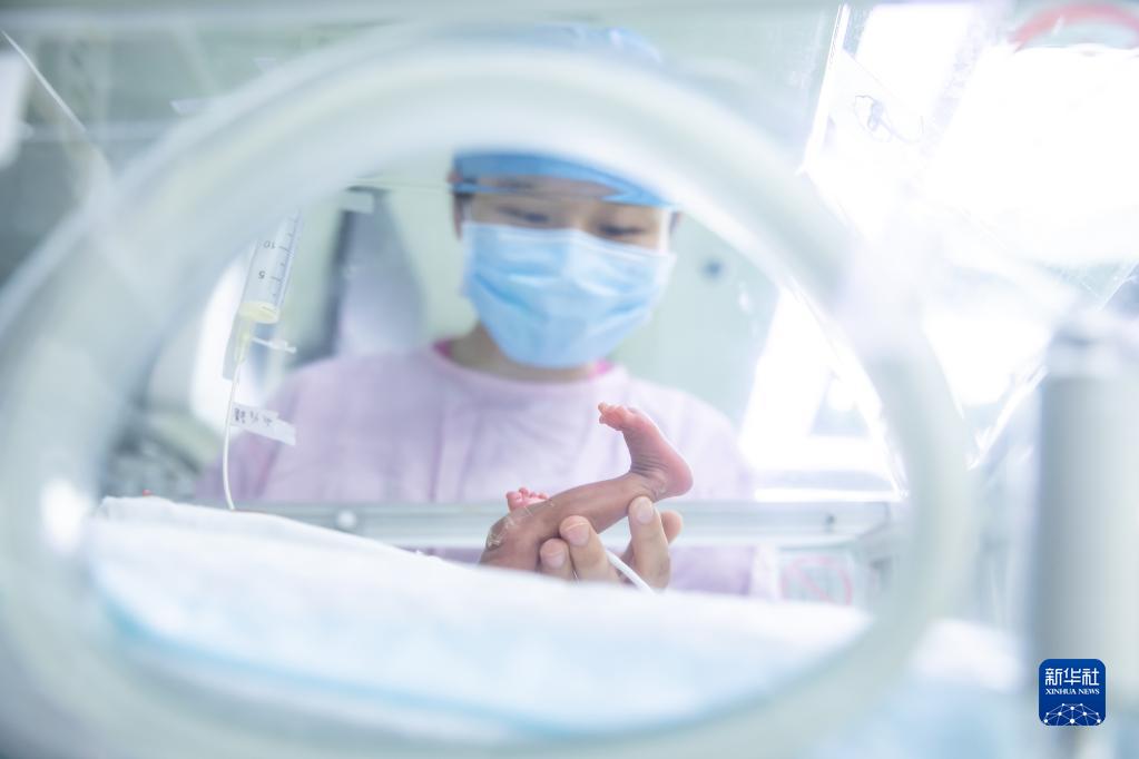 5月9日23時許,北京協和醫院新生兒重癥監護病房(NICU)護士楊楚嘉查看早產兒情況。