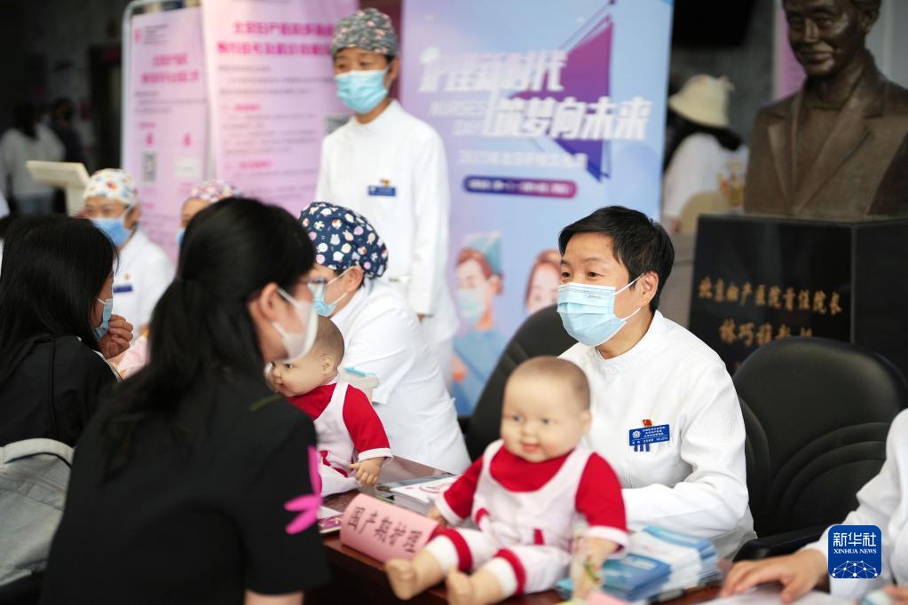 5月12日,護理專家在首都醫科大學附屬北京婦產醫院東院區為患者答疑解惑。