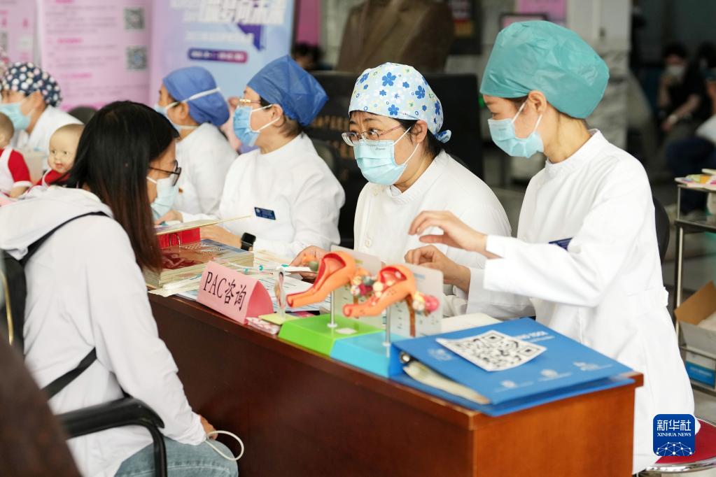 5月12日,護理專家在首都醫科大學附屬北京婦產醫院東院區為患者答疑解惑。