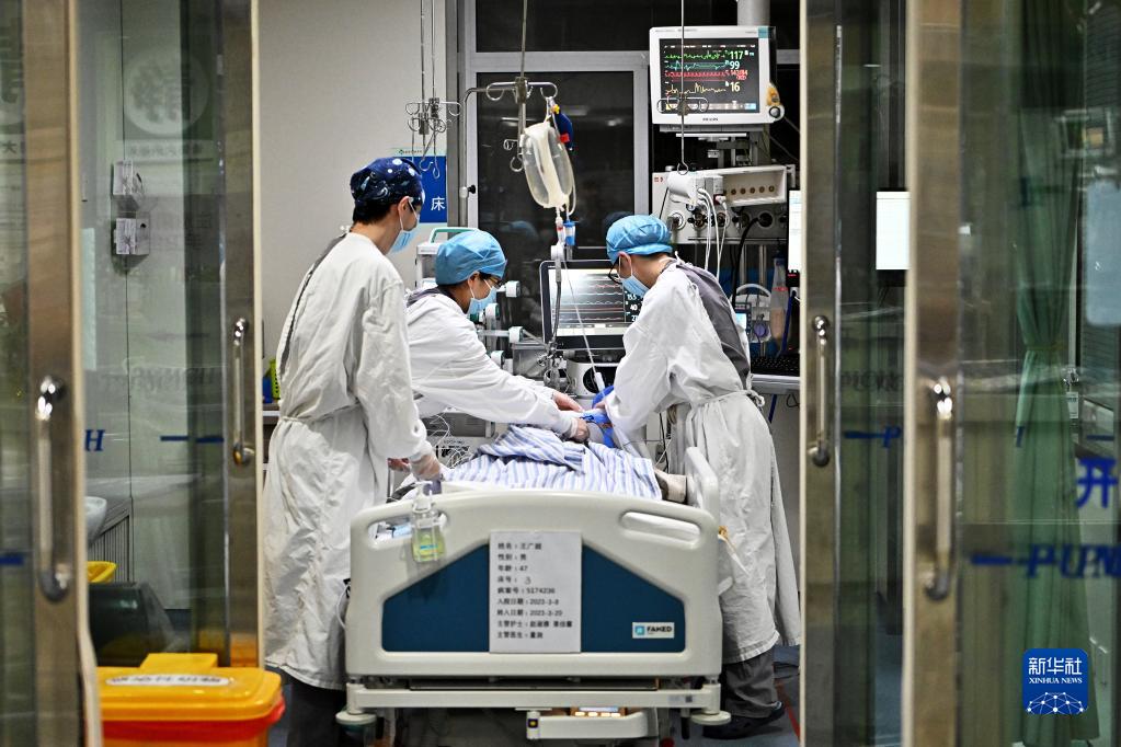 5月11日3時許,北京協和醫院內科重癥監護病房(MICU)護士任曉冬(左)、侯青敏(中)、吳杰在為患者翻身。