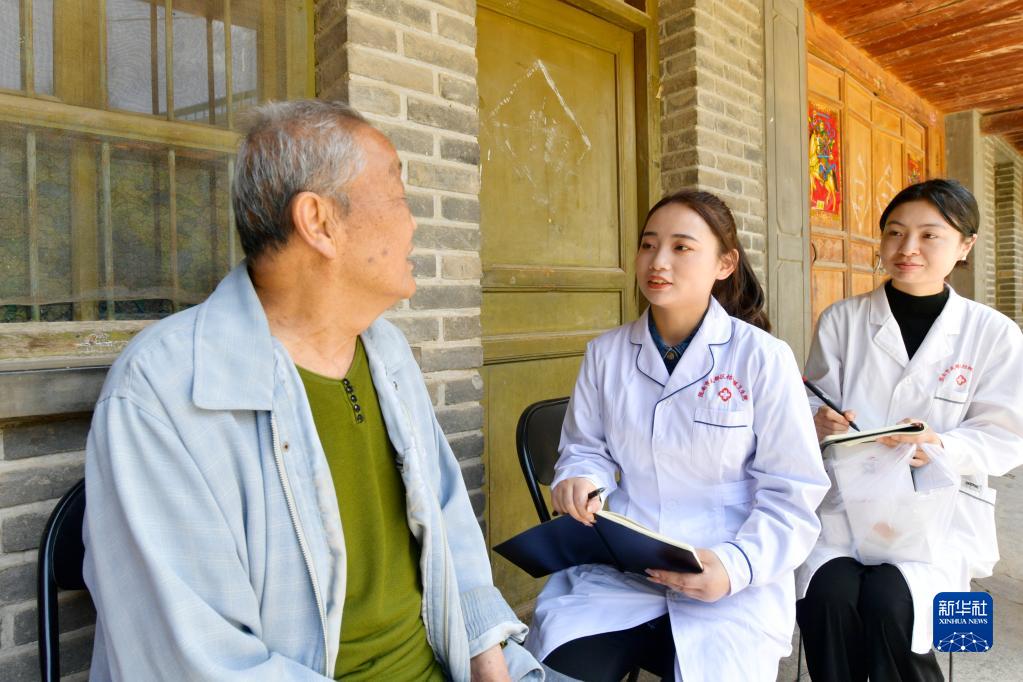 在武都區桔柑鎮大岸廟村,李瑞(左二)和同事回訪患者出院后身體情況(5月11日攝)。