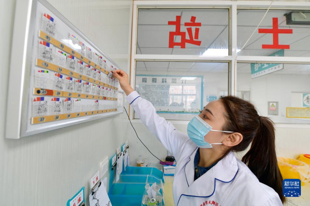 在武都區桔柑鎮衛生院住院部護士站,李瑞將患者入院登記卡放入護士站信息欄(5月11日攝)。