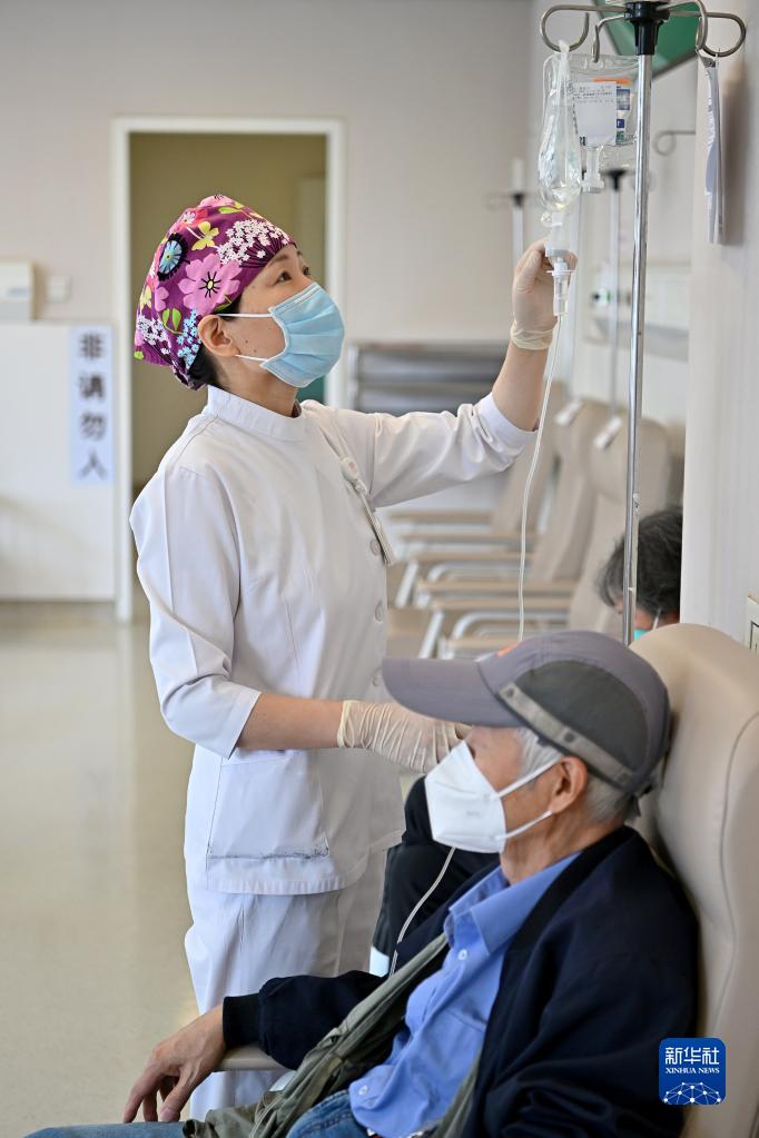 5月9日9時許,北京協和醫院門診治療室護士付亞麗查看病人輸液情況。