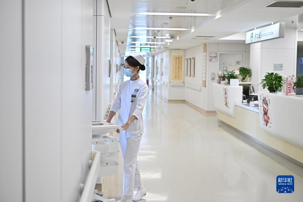 5月9日11時許,北京協和醫院國際醫療部護士陳夢進入病房為患者發藥。