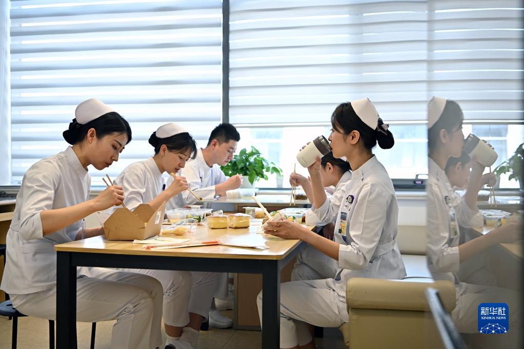 5月9日11時許,北京協和醫院國際醫療部護士在辦公室吃午飯。