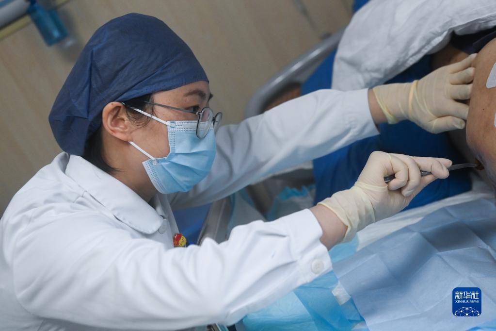5月11日,浙江醫院醫療照護病房的護士在病房內為臥床患者進行壓力性損傷部位換藥。