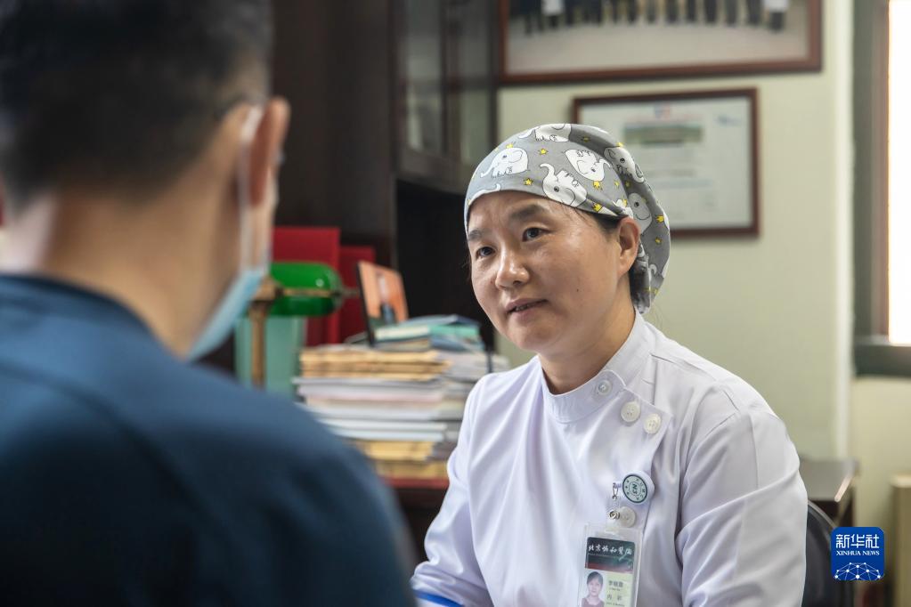 5月10日16時許,北京協和醫院艾滋病??谱o士李曉霞為艾滋病患者做一對一宣教,讓患者了解抗病毒治療的相關知識,提高患者依從性。