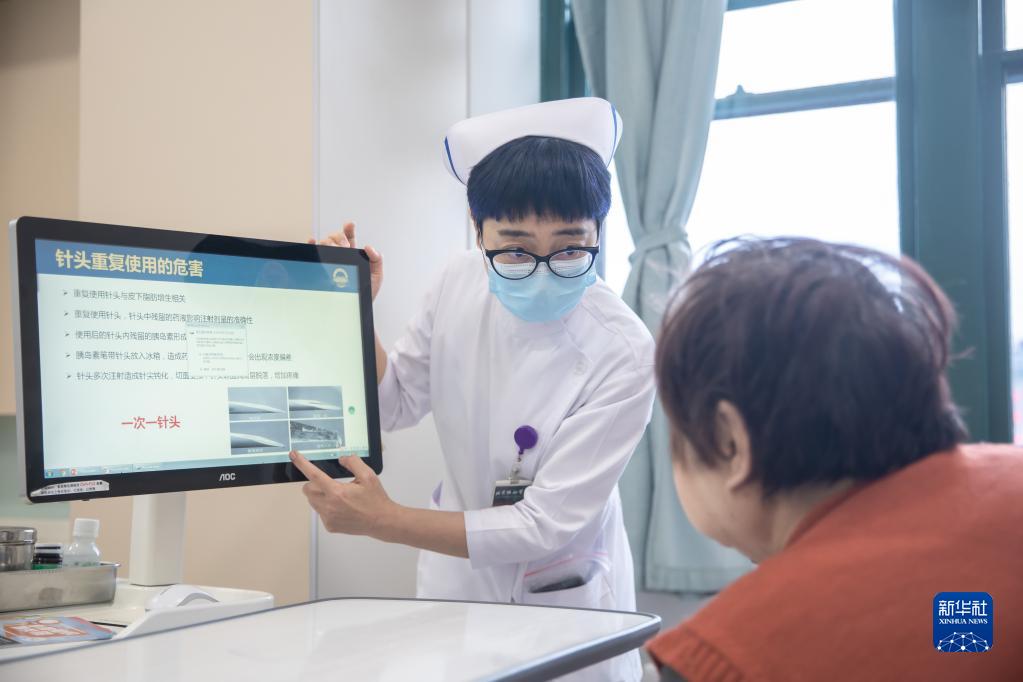 5月9日18時許,北京協和醫院內分泌科護士李蕊進行護理宣教。