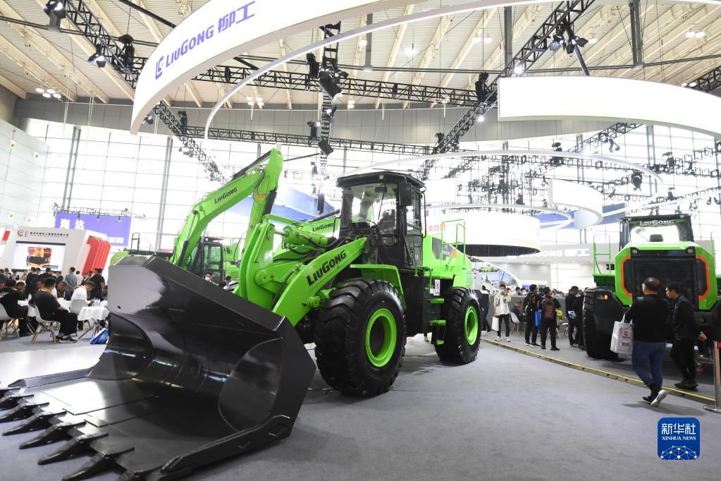 這是5月12日在長沙國際工程機械展覽會現場拍攝的新能源工程機械設備。