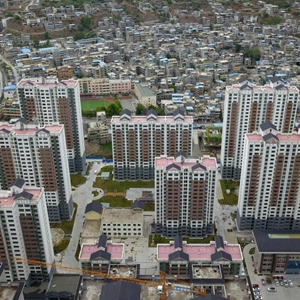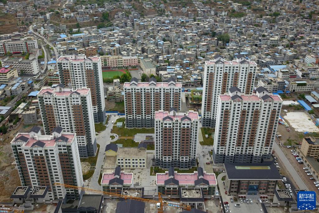 這是5月10日在甘肅省隴南市武都區拍攝的部分生態及地質災害避險搬遷群眾入住的兩水鎮安置點(無人機照片)。
