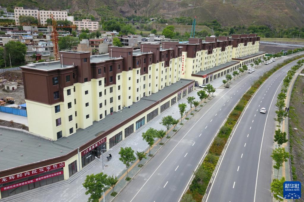 這是5月9日在甘肅省隴南市宕昌縣拍攝的已入住的宕昌縣沙灣鎮生態及地質災害避險搬遷安置房(無人機照片)。