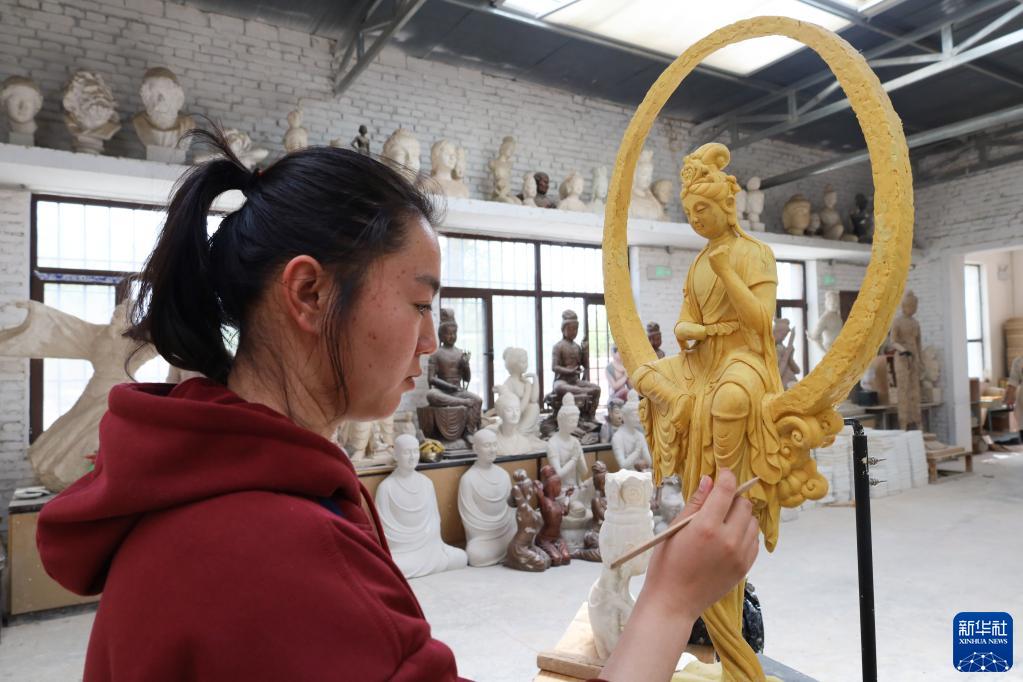 5月11日,學員在位于敦煌市的莫高里工匠村學習雕塑技藝。
