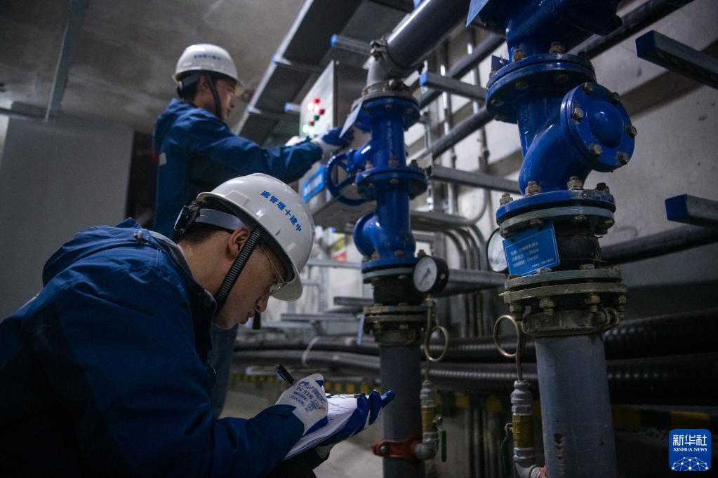 5月11日,中建十堰管廊公司運維人員在紫霄大道管廊內巡檢水泵抽水閥門。