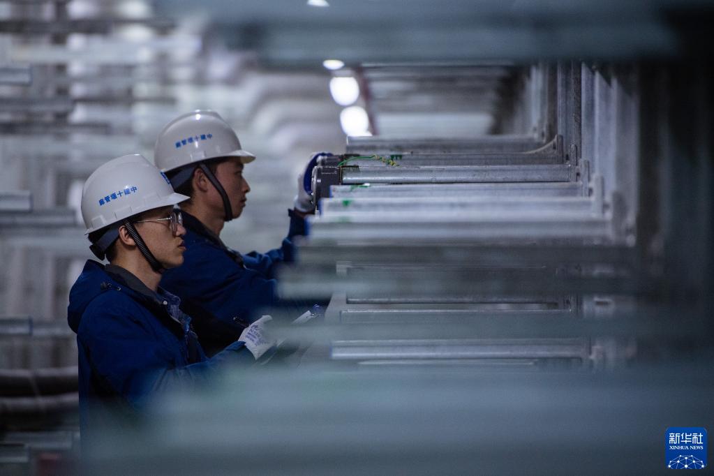 5月11日,中建十堰管廊公司運維人員在紫霄大道管廊內巡檢管線支架。