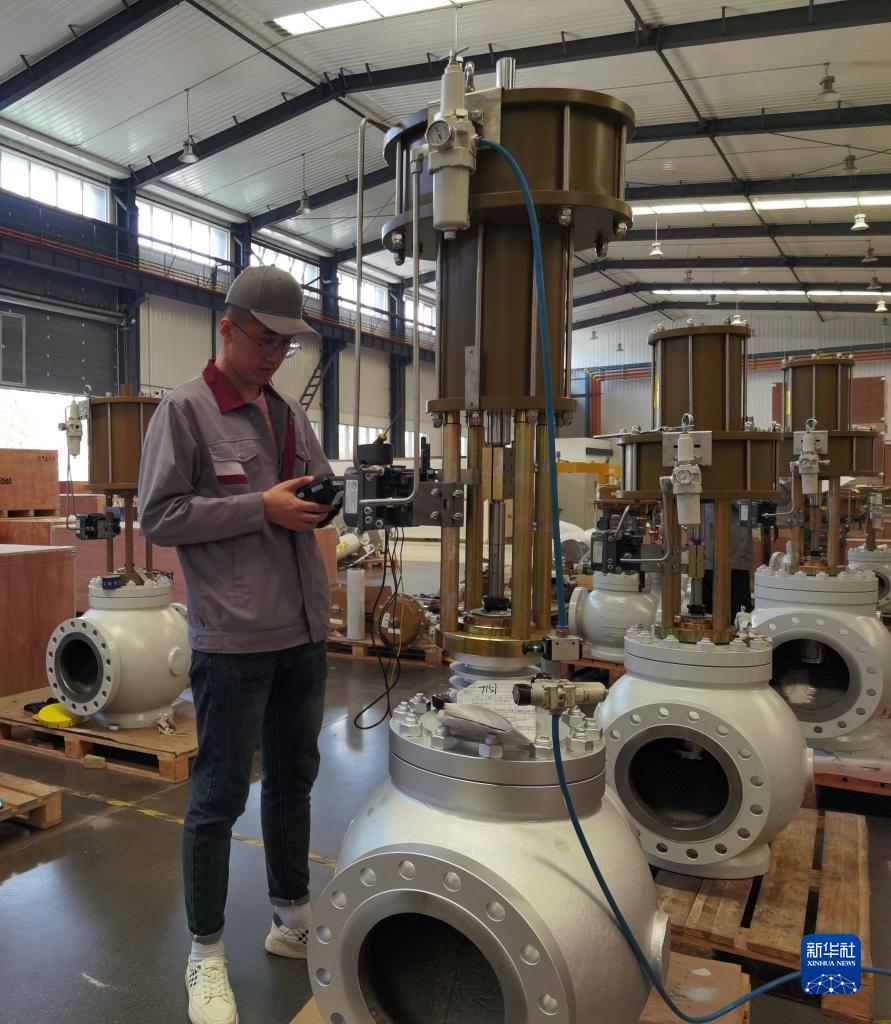 5月12日,位于山東濟寧鄒城市北宿鎮的艾坦姆流體控制技術(山東)有限公司,技術人員在車間對流體控制閥產品進行裝箱前的準備工作。