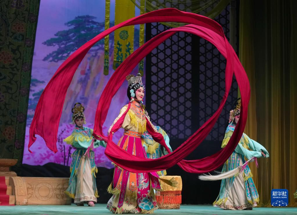 5月12日,演員在閉幕式演出現場表演河北梆子《寶蓮燈》。