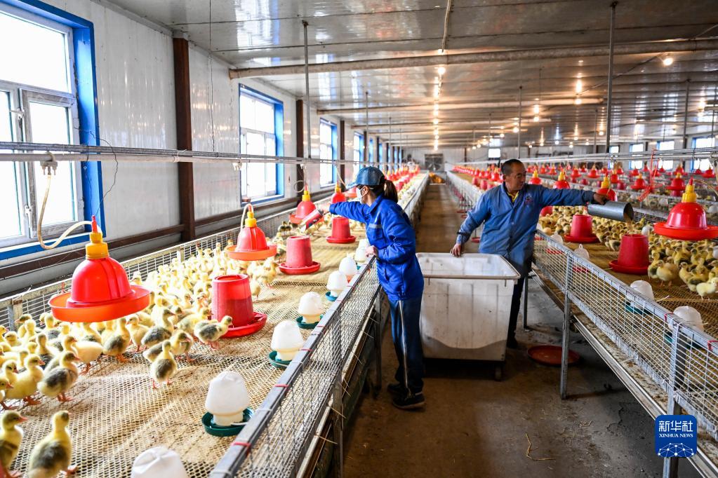 5月12日,阿榮旗全順大鵝養殖專業合作社工人給鵝雛喂食。