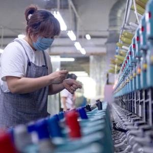 5月12日,黑龍江省穆棱市一家亞麻紡織企業的工人在進行生產作業。