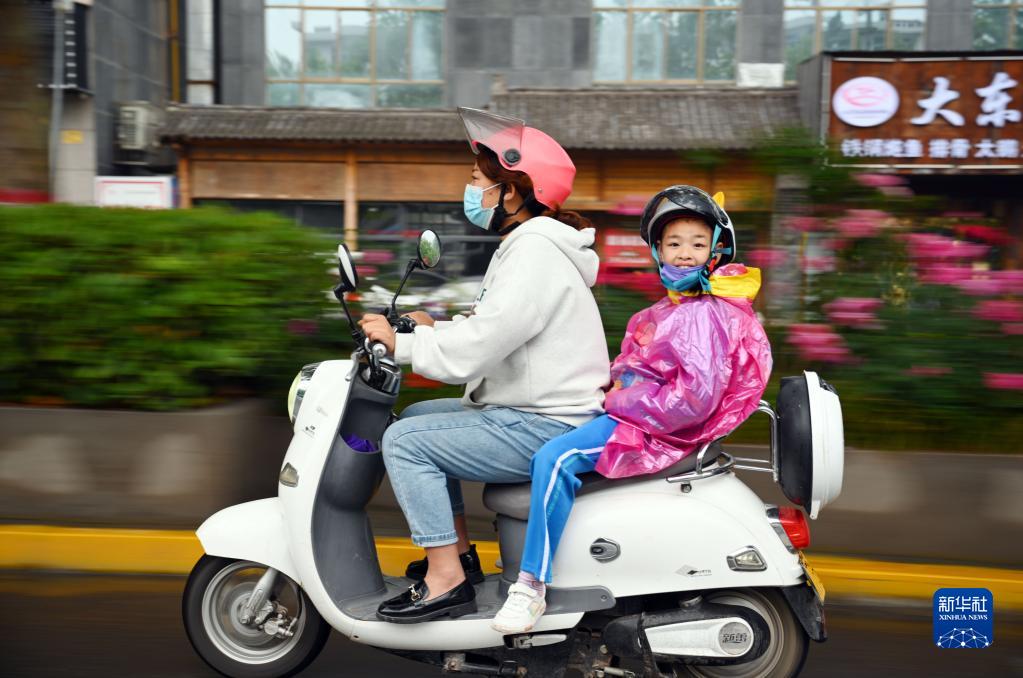 放學后王鴿騎車帶女兒趙懿菲回家(5月9日攝)。