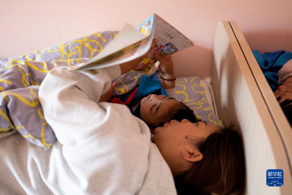 5月9日,在陜西省渭南市特殊教育學校,王鴿抱著小懿菲在午睡前讀書。