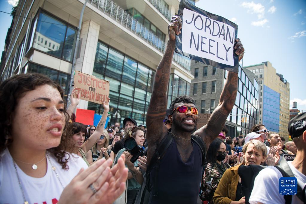 美國紐約市無家可歸黑人男子喬丹·尼利5月1日在地鐵遭白人男子丹尼爾·潘尼扼喉身亡,當地警方對潘尼進行問詢后于當天將其釋放。連日來,這一事件引發紐約民眾持續抗議,要求為死者伸張正義。