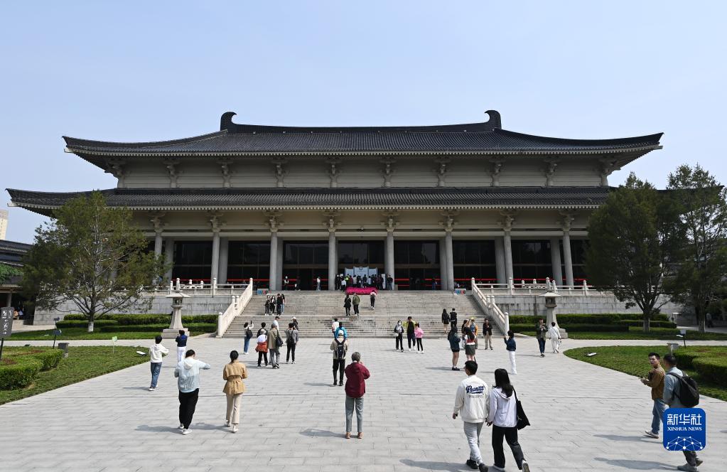 5月11日,游客走進陜西歷史博物館參觀。