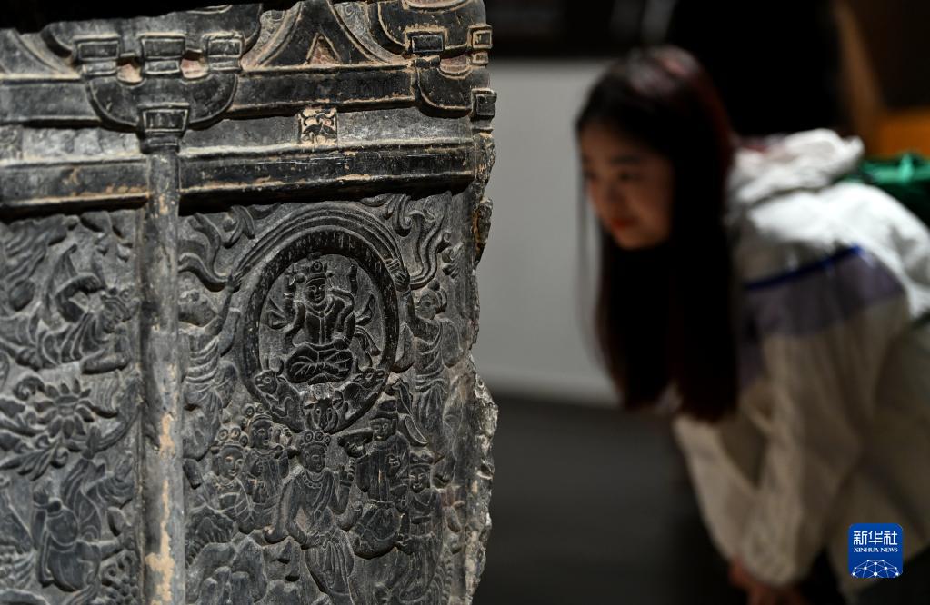 這是在西安博物院展出的史君墓石?。?月8日攝)。墓主史君是北周涼州薩保,粟特人。石槨整體為中國傳統歇山頂殿堂式建筑,四壁浮雕內容和風格則帶有鮮明的西域特色。