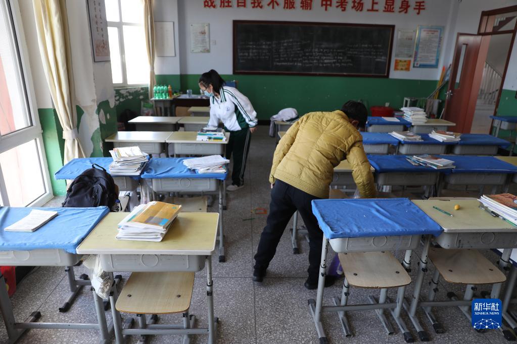清晨,張連琴和女兒第一個來到教室,打掃衛生。這是母女倆多年來每天到校必做的一件事(5月8日攝)。